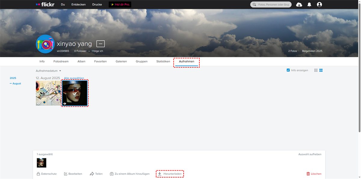 Wie kann man ein einzelnes Foto oder Video von Flickr herunterladen?