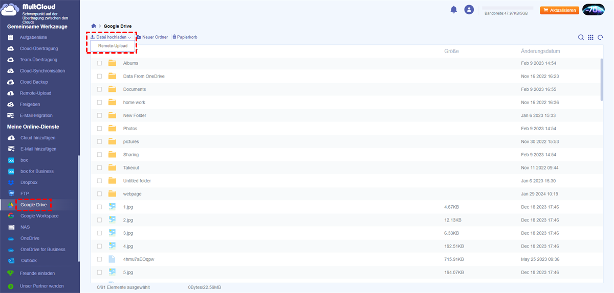Wie lädt man Dateien direkt auf Google Drive über Remote-Upload herunter?