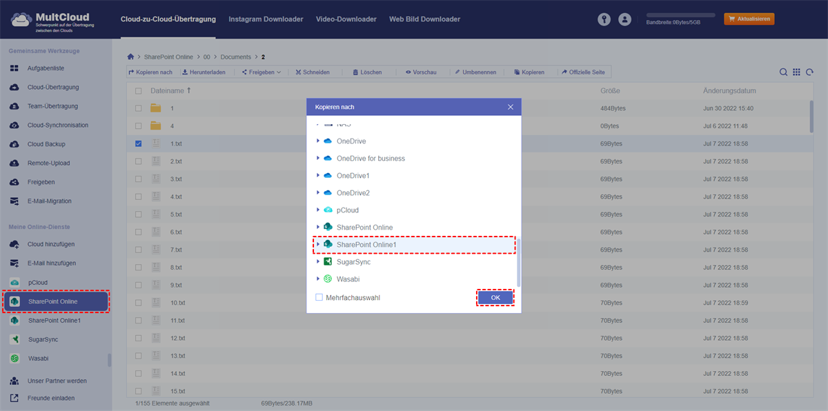 4. Dateien zwischen SharePoint-Websites mit MultCloud „Kopieren nach“ kopieren