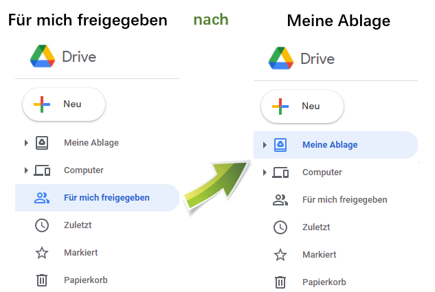 Verschieben von Dateien von „Für mich freigegeben auf „Meine Ablage” (für schnellen Zugriff)