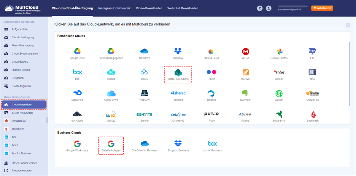 [Effektive Methode] Dateien von SharePoint auf Geteilte Ablagen verschieben - mit MultCloud