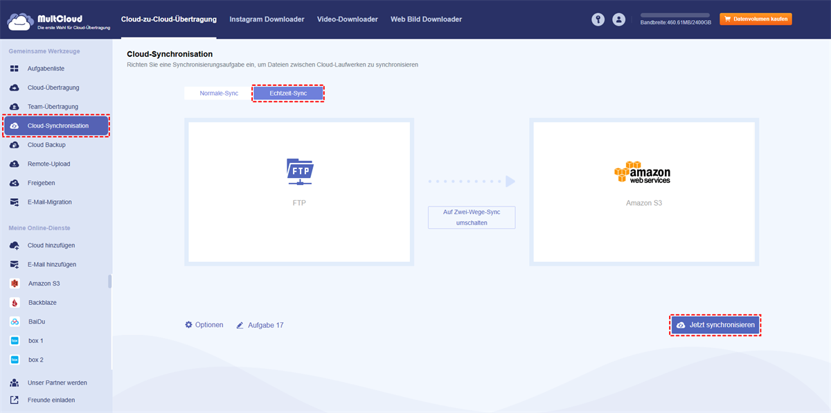 Wenn Sie regelmäßig Dateien von Ihrem FTP-Server in einen Amazon S3-Bucket sichern müssen, ist die Echtzeit-Sync die beste Wahl. So funktioniert es: