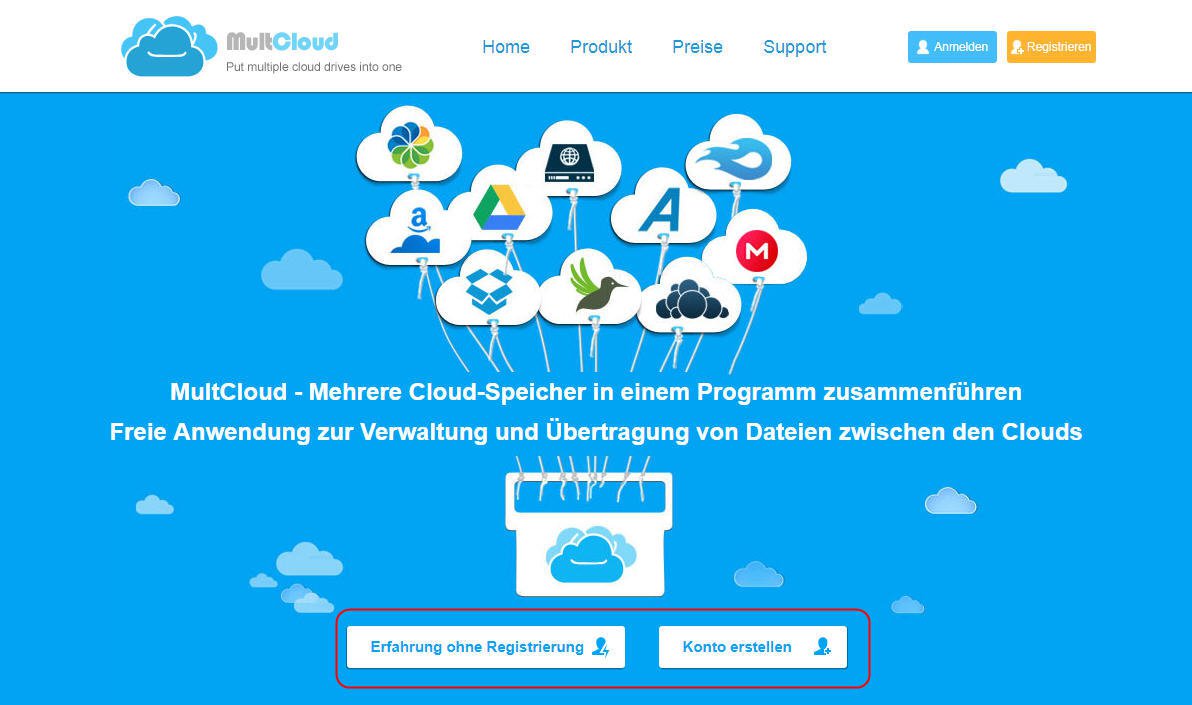 MultCloud unterstützt Clouds