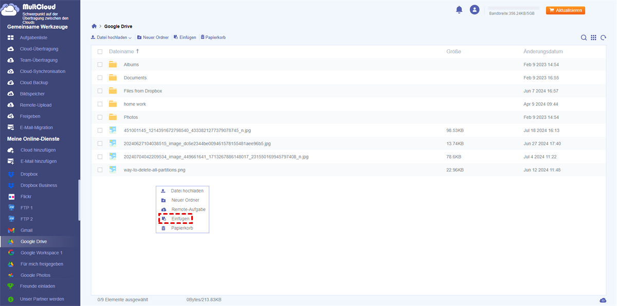 - Dateien direkt von anderen Cloud-Laufwerken auf Google Drive übertragen, synchronisieren oder sichern (z. B. Dateien von Dropbox auf Google Drive übertragen);