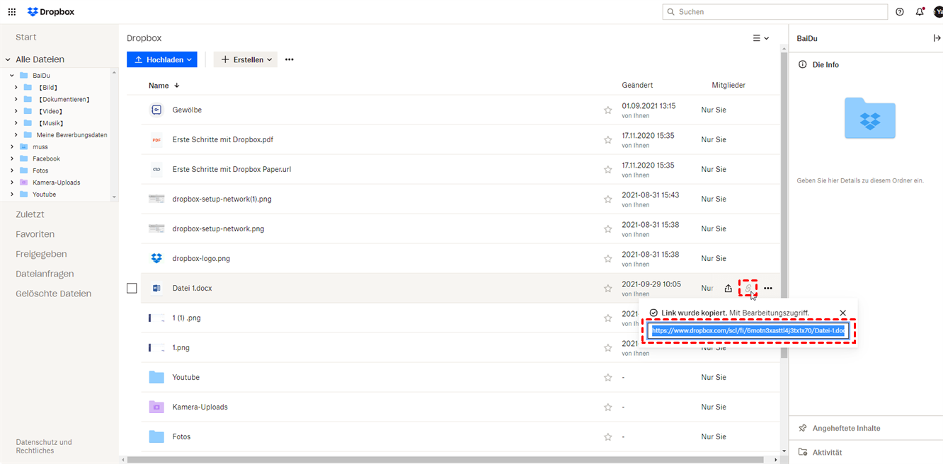 Methode 4: Dateien auf Dropbox über einen Link teilen
