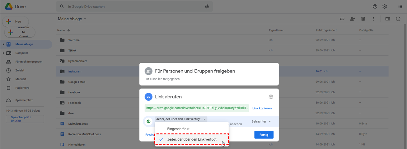 Methode 4: Dateien auf Google Drive über einen Link teilen