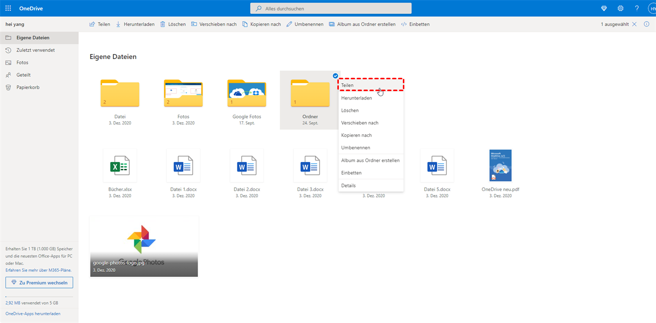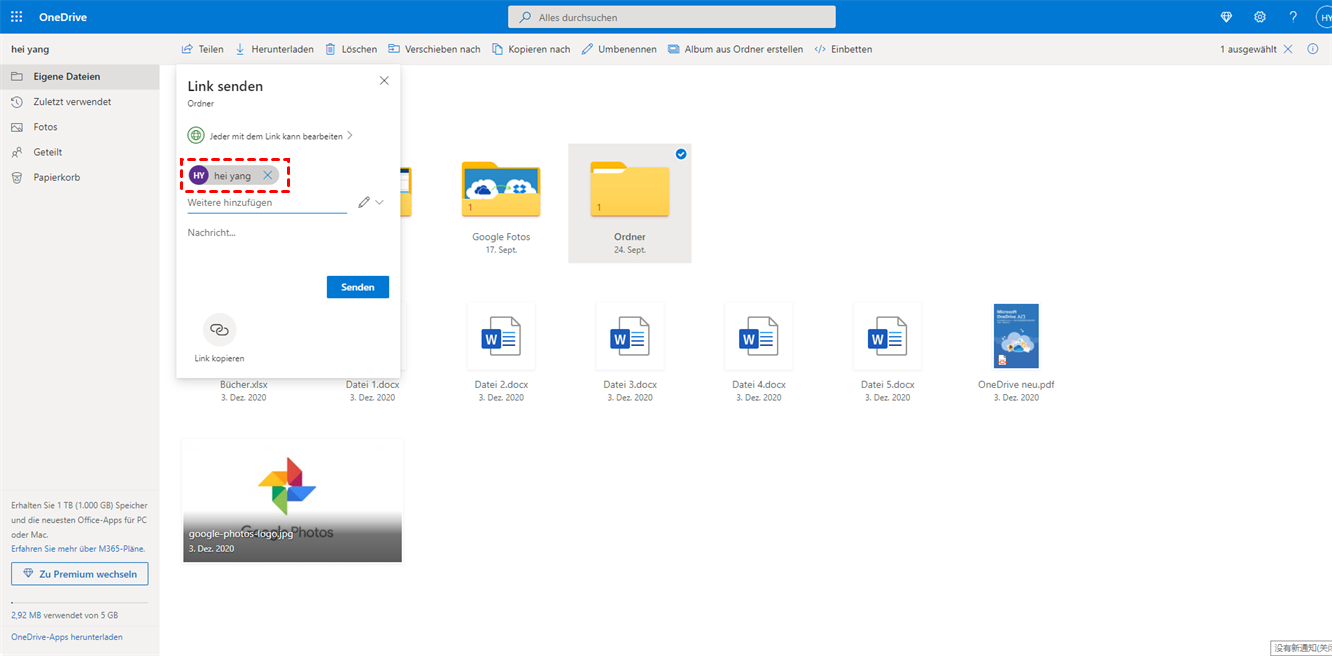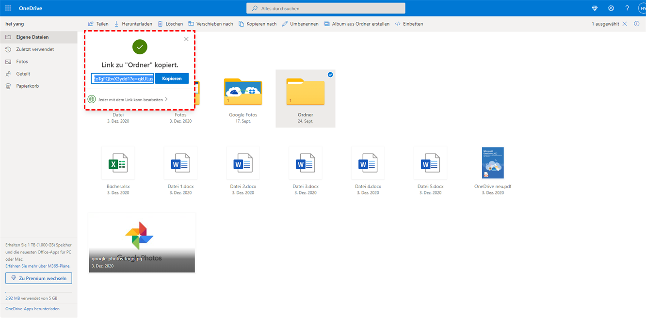 Methode 4: Dateien auf OneDrive über einen Link teilen