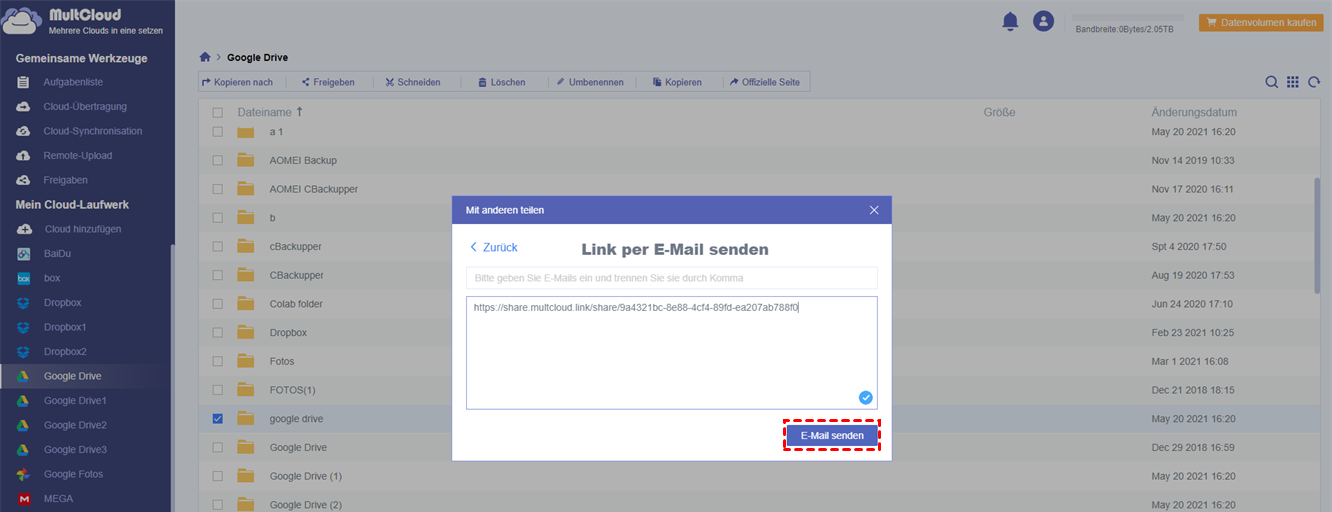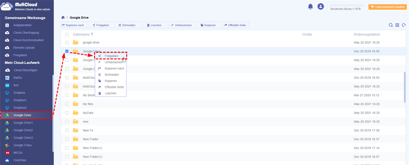 Hinweis:Wenn Sie wissen möchten, wie Sie einen Ordner in Google Drive hochladen können, können Sie auch MultCloud verwenden, um diese Aufgabe zu erfüllen.