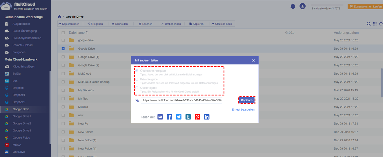 Ein neuartiger Weg zur Freigabe von Dateien in der Cloud durch MultCloud