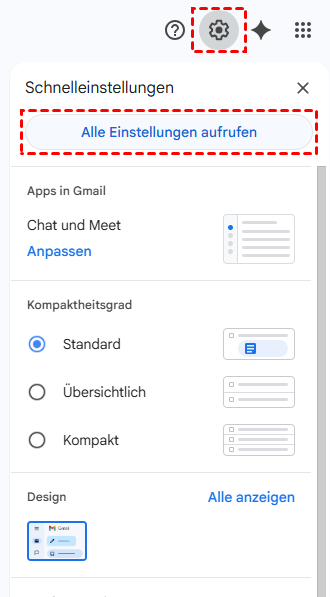 2. Tippen Sie auf das Zahnradsymbol oben rechts und wählen Sie „Alle Einstellungen anzeigen“.