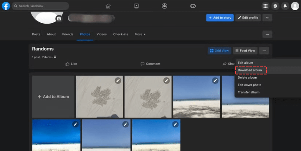 Wenn du ein ganzes Album speichern möchtest, bietet Facebook ein integriertes Tool:
