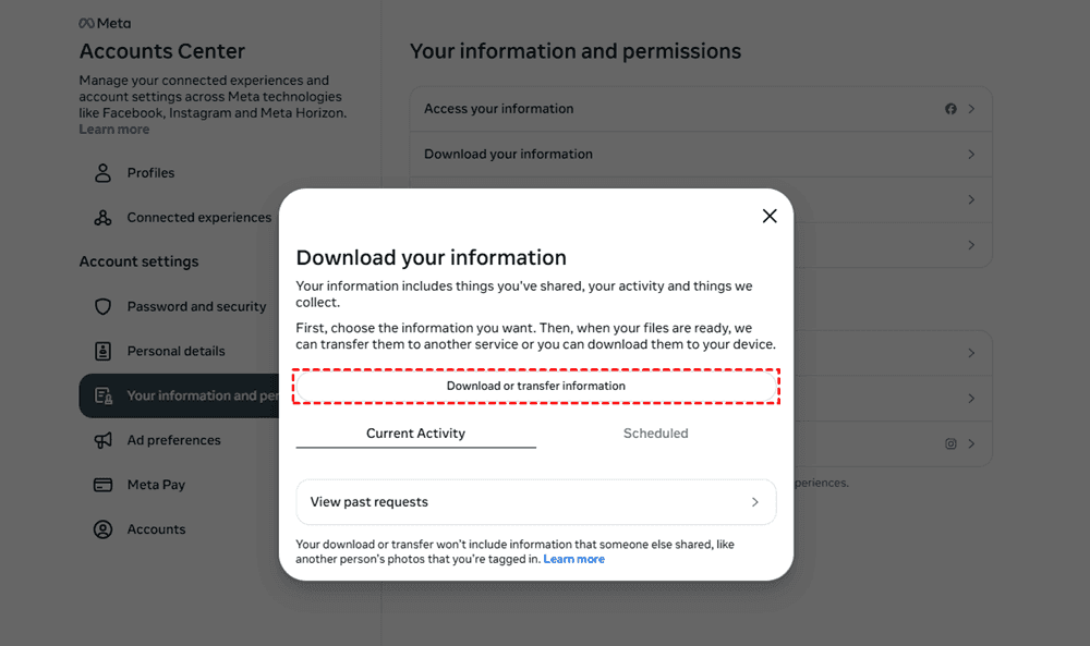 Schritt 2: Klicke auf „Informationen herunterladen oder übertragen“.