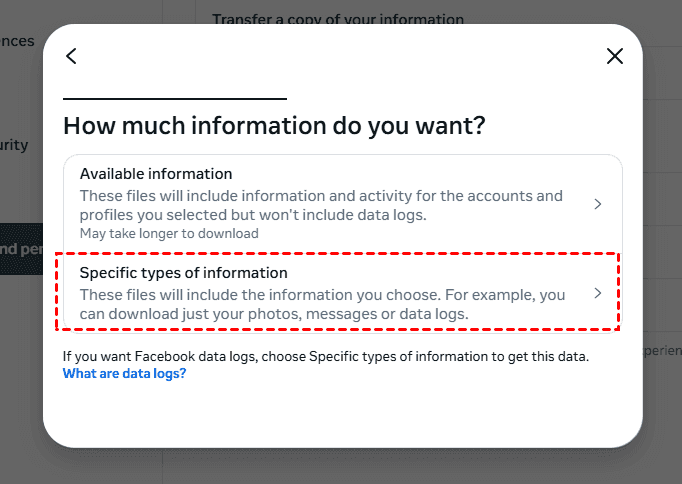 Bevor wir uns mit der praktischen Anleitung befassen, ist es wichtig, die verschiedenen Optionen zu kennen. Facebook ermöglicht Nutzern das Herunterladen von: