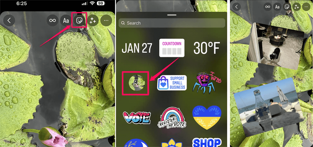 Schritt 5: Gehe zu Instagram und tippe erneut auf das Sticker-Symbol. Tippe länger auf eine leere Stelle, um „Einfügen“ auszuwählen.