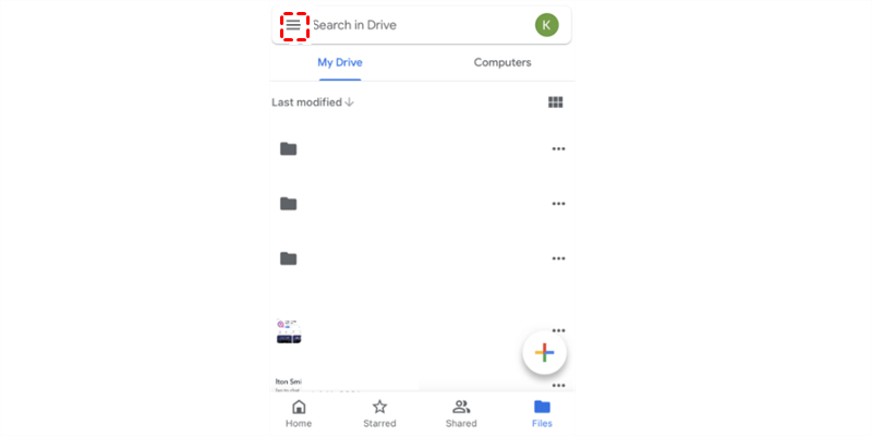 Schritt 1: Starten Sie Google Drive auf Ihrem iPhone und klicken Sie oben links auf das Symbol mit den drei vertikalen Linien.