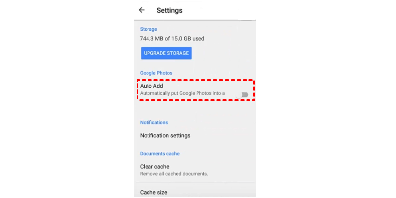 Schritt 2: Klicken Sie auf „Automatisch hinzufügen“, um Fotos von Ihrem Android-Smartphone zu Google Drive hinzuzufügen. Dadurch werden Fotos von Ihrem Android-Smartphone automatisch zu Google Drive hinzugefügt.
