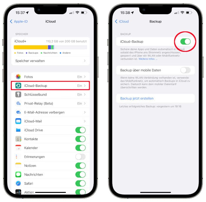 Hier finden Sie die Anweisungen, wie kann man über iCloud Backup Fotos auf iCloud auf dem iPhone sichern: