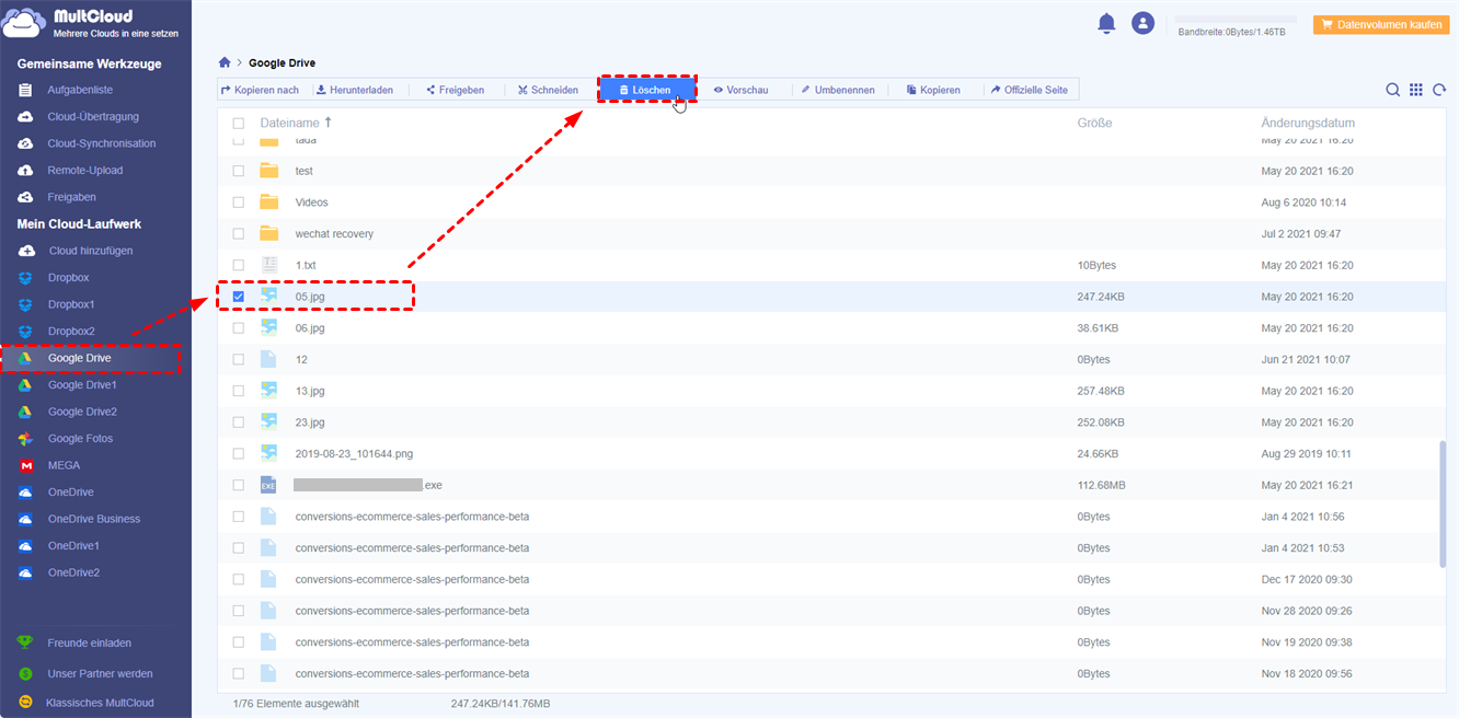 Wie kann Fotos aus Google Drive-Konten einfach über MultCloud löschen?