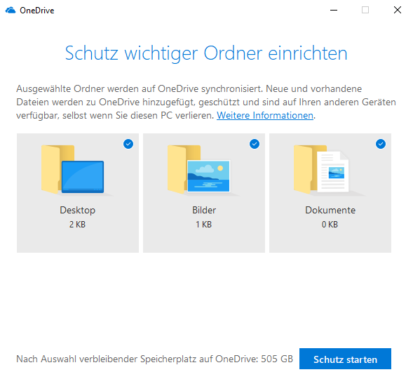 Schritt 3. Markieren Sie „Bilder”, um Fotos im Ordner „Bilder” automatisch auf OneDrive hochzuladen. Und dann klicken Sie „Schutz starten”.