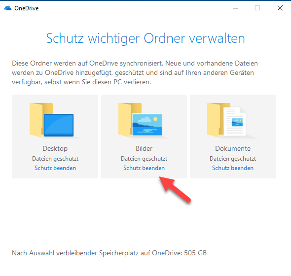 Schritt 4. Klicken Sie schließlich auf „Schutz beenden”, um Fotos automatisch auf OneDrive hochzuladen.