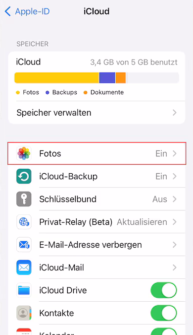 5. Schritt: Aktivieren Sie iCloud-Fotos.