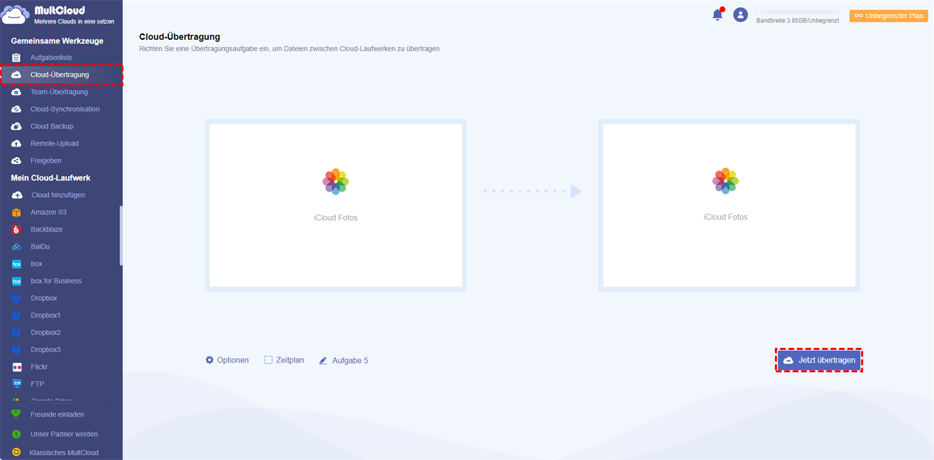 MultCloud: Direkte Übertragung von iCloud Fotos auf ein anderes Konto auf allen Geräten