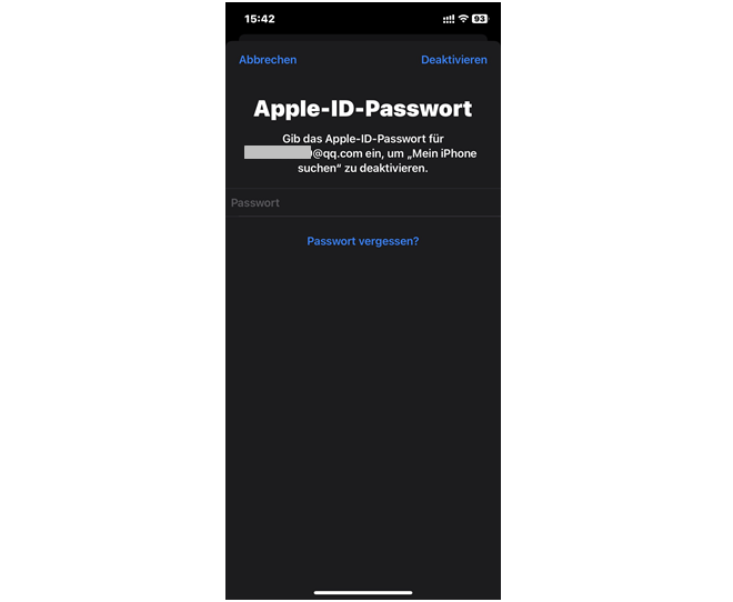 Schritt 3. Geben Sie das Passwort Ihrer Apple ID in das Pop-up-Menü ein und drücken Sie auf „Ausschalten“. Auf diese Weise können Sie die Funktion „Mein iPhone suchen“ auf dem Gerät für Ihren aktuellen iCloud-Account deaktivieren.