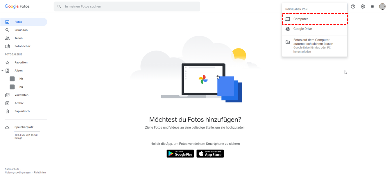 Wie kann man vom PC Fotos zu Google Fotos übertragen?