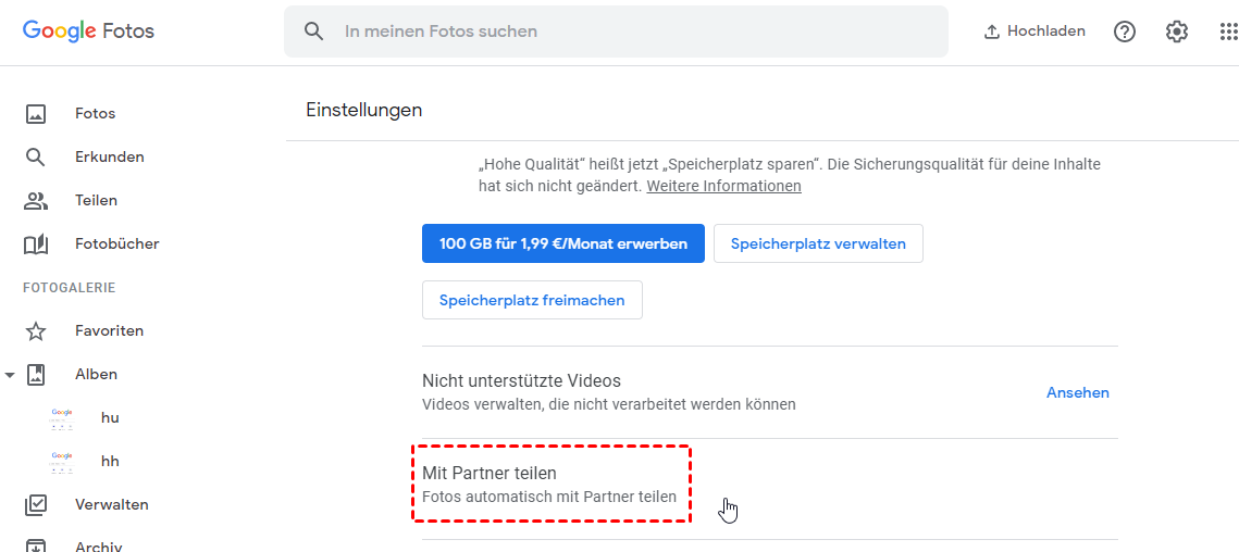 Heutzutage bevorzugen die Menschen die Speicherung von Daten in einem Cloud-Speicher, da sie jederzeit und überall auf ihre Daten zugreifen können. Auf diese Weise wird die Verwendung von Cloud-Laufwerken immer beliebter. Google Fotos ist ein hervorragender Dienst zum Teilen und Speichern von Fotos, der von Google entwickelt wurde. Im Allgemeinen können Sie, solange Sie die Speichereinstellungen auf „Hohe Qualität” setzen, unbegrenzten Fotospeicher für Fotos bis zu einer Auflösung von 1080p erhalten.