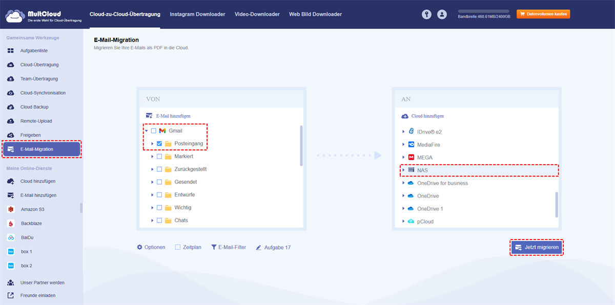 Methode 1. Gmail auf QNAP sichern mit MultCloud
