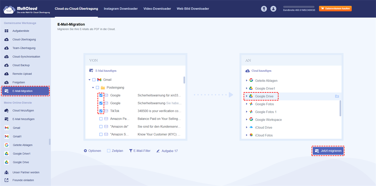 Methode 1: Gmail-E-Mails mit MultCloud nach Datum archivieren