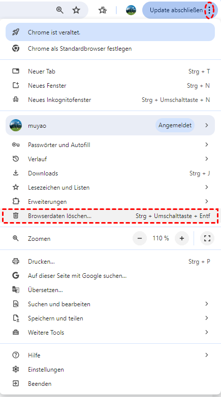 Schritt 2. Im Menü klicken Sie auf „Browserdaten löschen“.