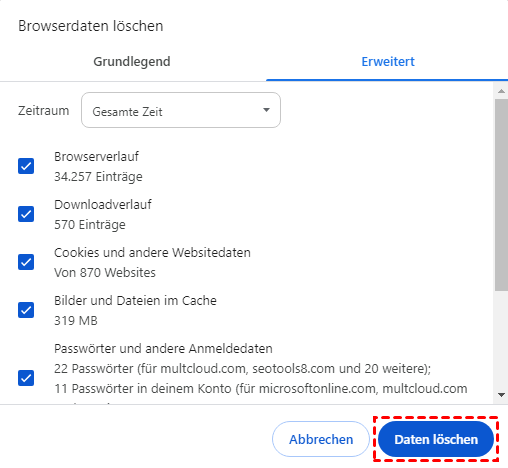 Ihr Browser verwendet Caching, um die Leistung zu steigern und die Benutzererfahrung zu verbessern. Wenn jedoch dieser Cache und die Cookies beschädigt sind, kann dies Probleme beim Erstellen von Dateikopien verursachen. In einem solchen Fall kann das Löschen der Browserdaten helfen. Befolgen Sie die anwendungsspezifischen Anweisungen für Ihren Browser.