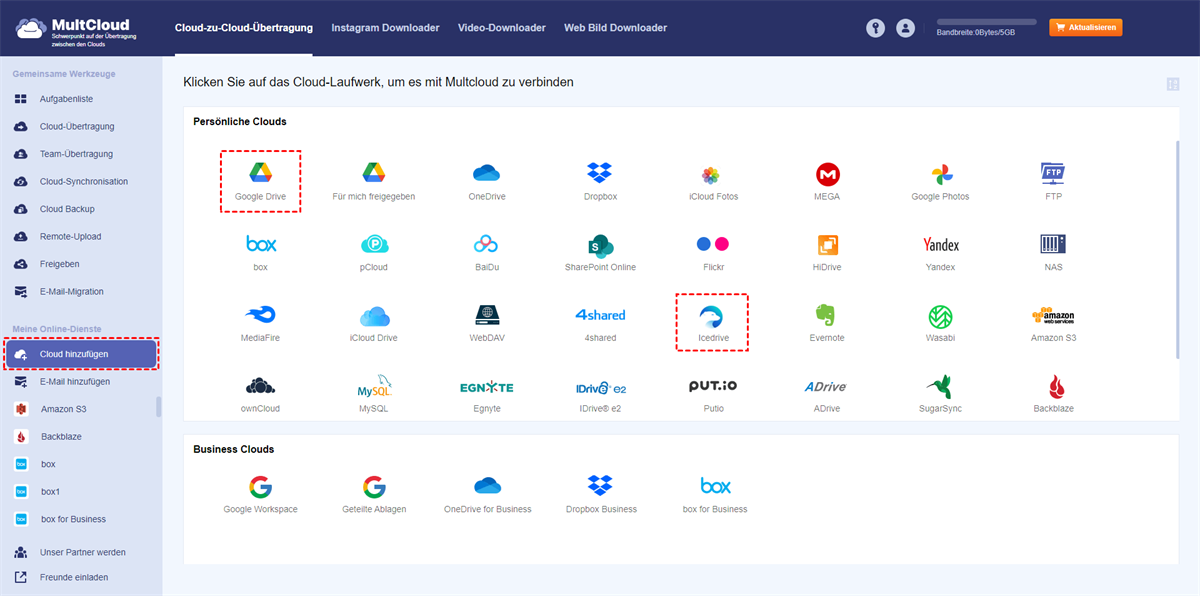 Wie kann ich Google Drive mit Icedrive synchronisieren? - über MultCloud