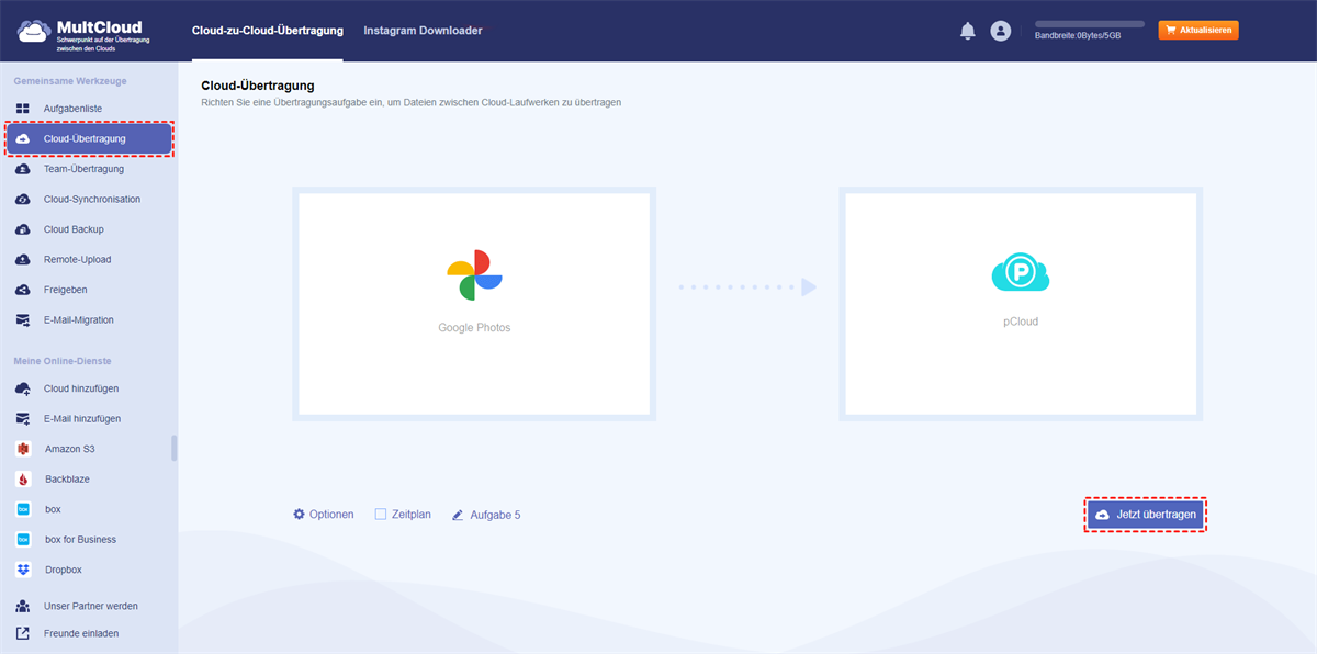 Darüber hinaus können Sie den leistungsstarken webbasierten Multi-Cloud-Speichermanager MultCloud verwenden, mit dem Sie Google Fotos auf pCloud speichern können.