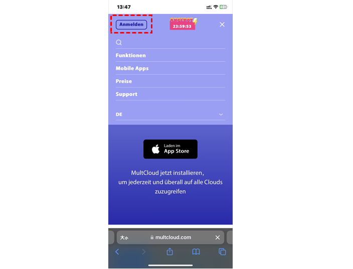 Um Google Fotos auf iCloud auf Mobiltelefonen zu übertragen, können Sie MultCloud immer noch im Browser öffnen. Zu Ihrer Information, MultCloud hat jetzt seine mobile App und die mobile Version wird in Kürze iCloud Fotos unterstützen. Wenn sie unterstützt wird, können Sie die entsprechenden MC-Anwendungen auf Ihr Gerät herunterladen und installieren. Aber jetzt nehmen wir immer noch die MultCloud Web-App als einen Weg, um Ihnen zu helfen, Fotos von Google Fotos zu iCloud Fotos zu übertragen.