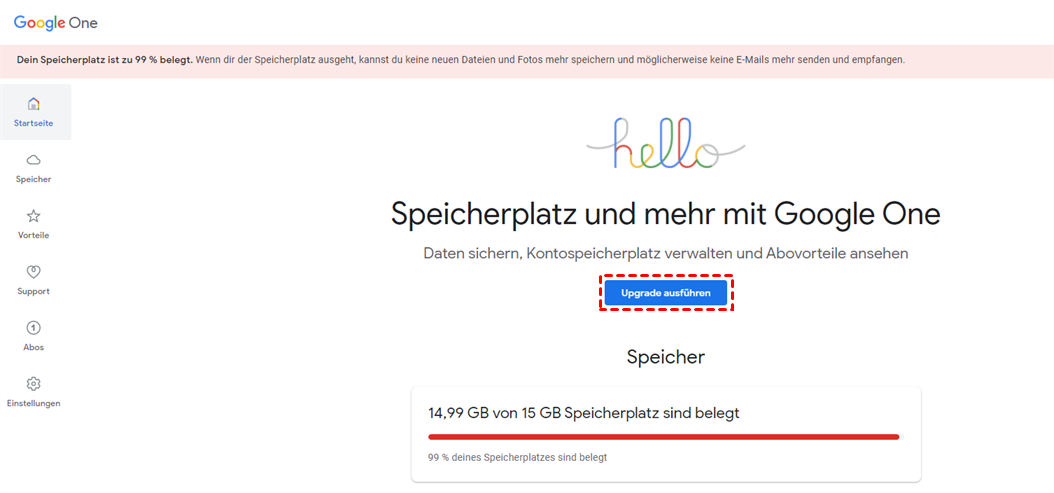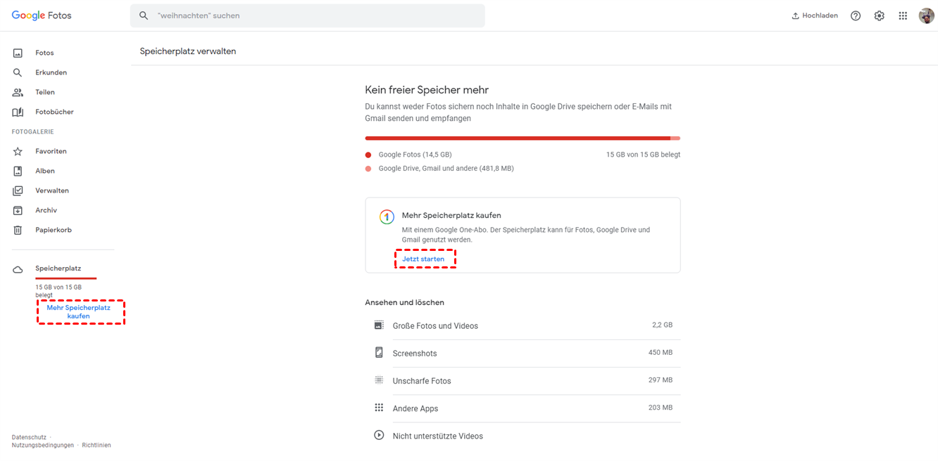 Methode 3: Mehr Speicherplatz mit Google One kaufen