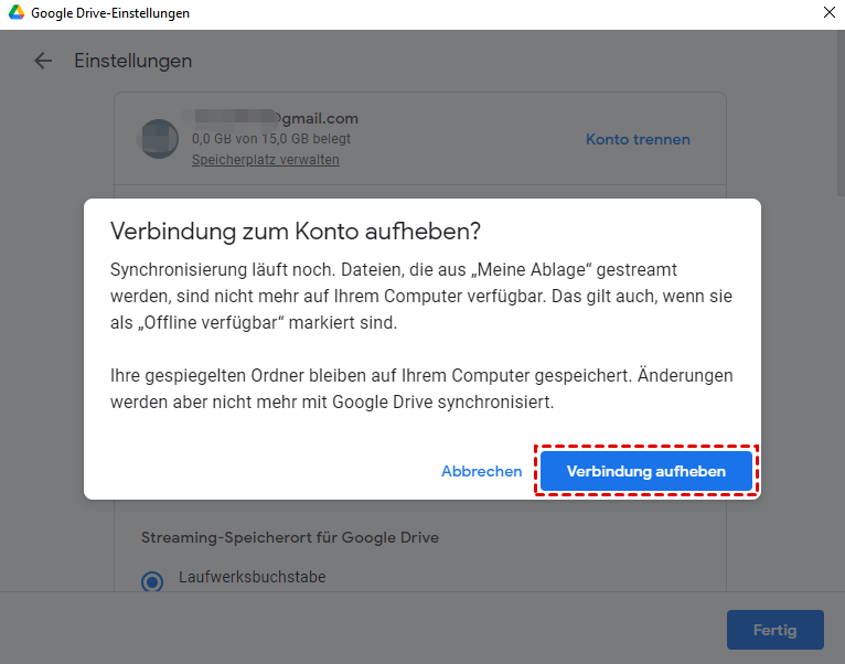 Wenn Sie lokale Fotos von PCs mit Google Fotos entkoppeln möchten, können Sie Ihr Google-Konto auf Drive for Desktop trennen. Folgen Sie nun den Schritten im folgenden Abschnitt: