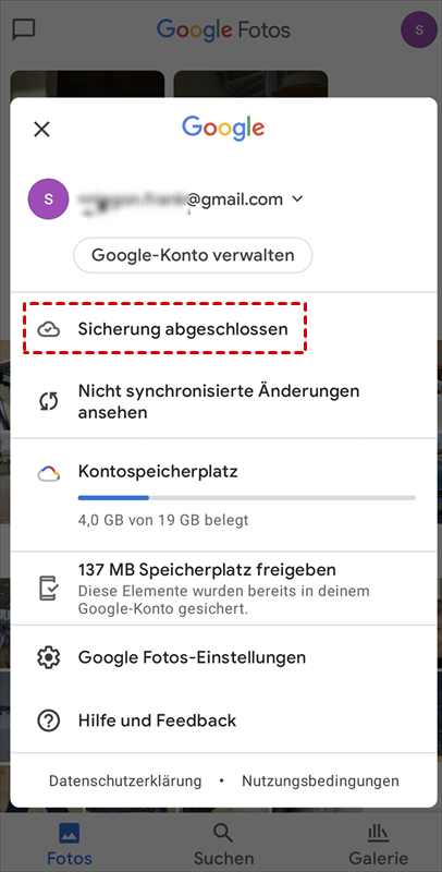 Schritt 2: Geben Sie Ihr Profilbild ein. Wenn angezeigt wird, dass „Sicherung abgeschlossen“, werden die Dateien nicht mit Google Fotos synchronisiert.