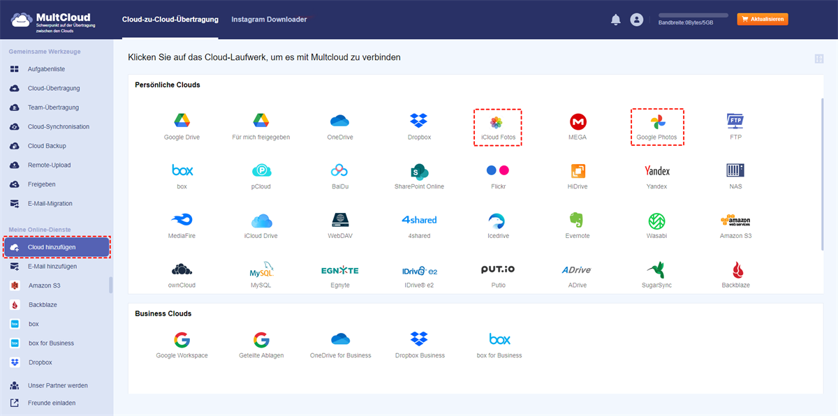 Teil 1. Google Fotos und iCloud gleichzeitig verwenden - mit MultCloud