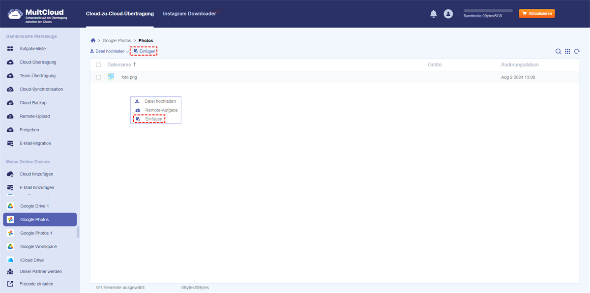 Außerdem können Sie alle Clouds, die Sie auf der MultCloud-Oberfläche haben, problemlos verwalten, indem Sie Google Fotos und iCloud gemeinsam verwenden.