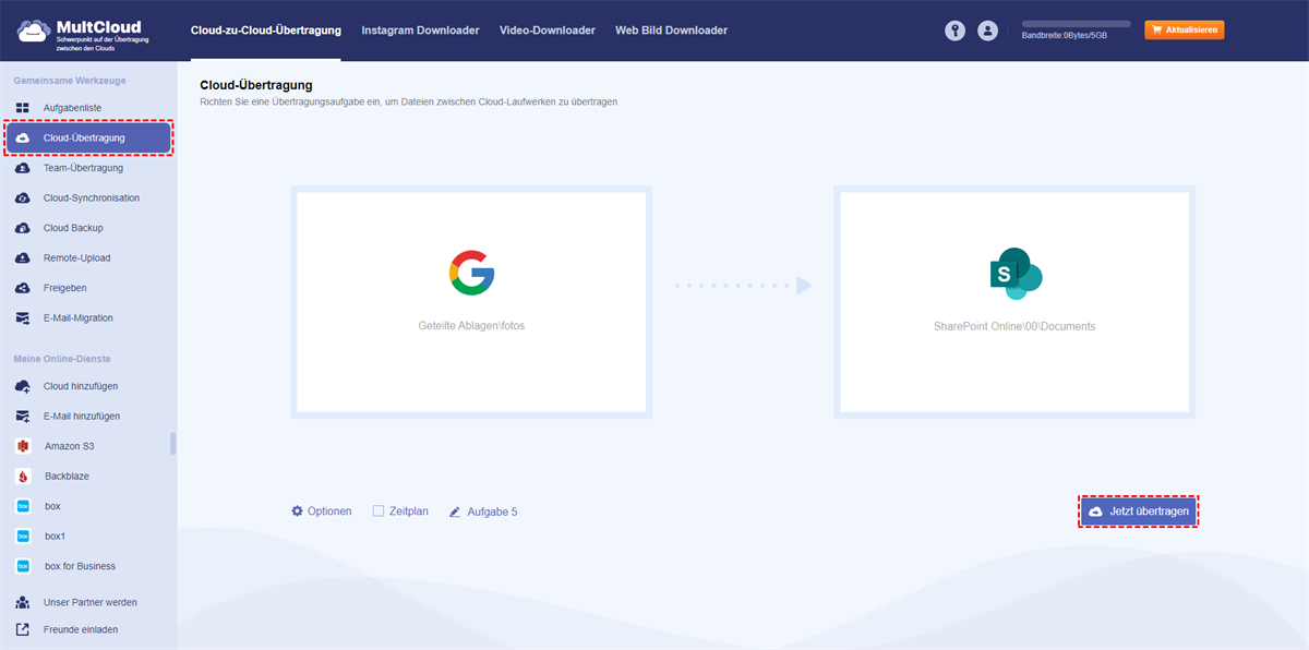 Jetzt können Sie der folgenden Anleitung folgen, um die Migration von Google geteilte Ablagen zu SharePoint mithilfe von Cloud-Übertragung abzuschließen.
