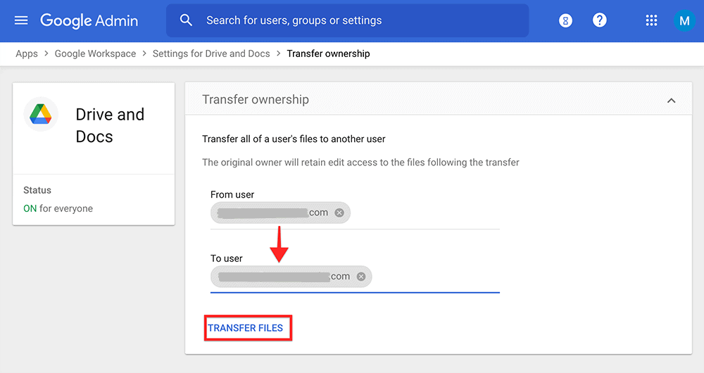 Google Workspace ermöglicht es Benutzern, Daten auf andere Konten zu übertragen, indem sie den Dateibesitz übertragen. Diese Methode kann nur von Google Workspace-Administratoren durchgeführt werden.
