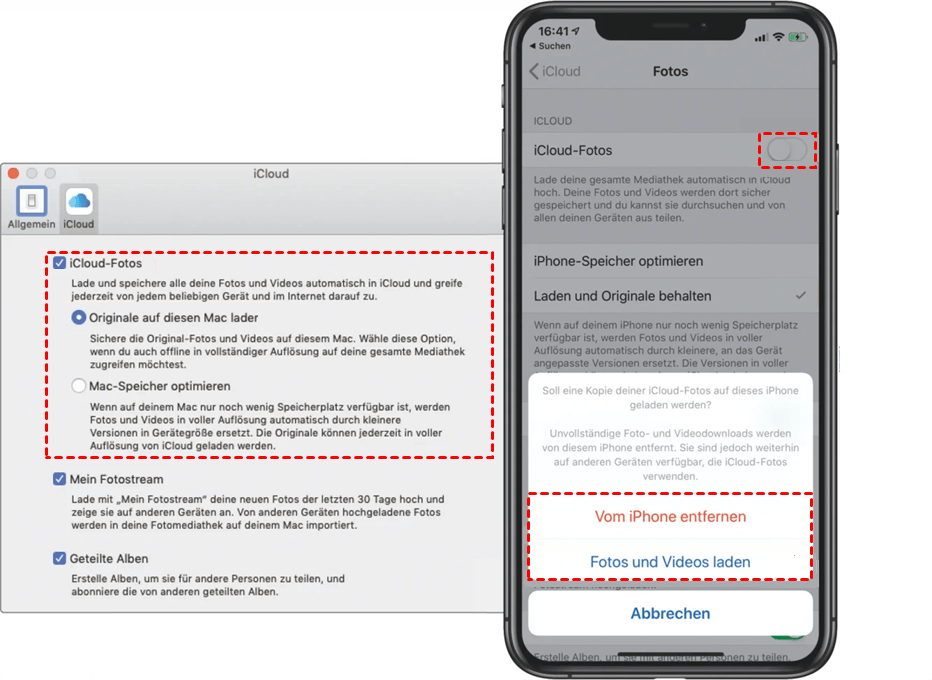 | 📴 Teil 2. iCloud-Fotos deaktivieren: | Nachdem alle Vorbereitungen abgeschlossen sind, können Sie die iCloud-Fotos-Synchronisierungsfunktion auf verschiedenen Geräten deaktivieren. |