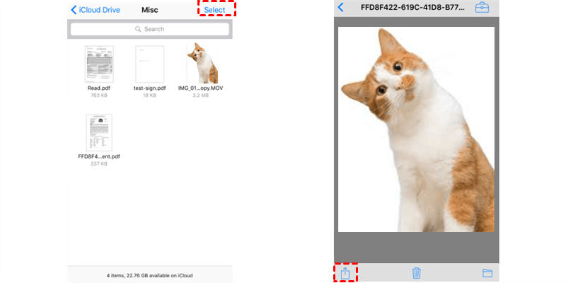 Schritt 1: Starten Sie iCloud auf Ihrem iPhone und melden Sie sich mit Ihrer Apple-ID an. Wählen Sie anschließend das Foto aus, das Sie zu Dropbox verschieben möchten.