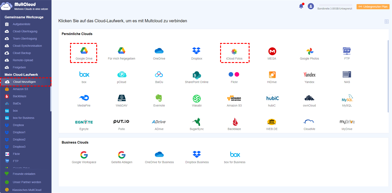 Bonus-Tipp: Wie kann man iCloud Fotos in anderen Clouds sichern?