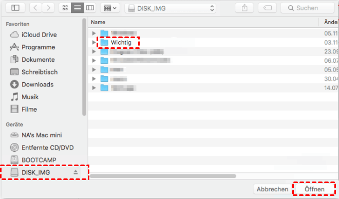 Schritt 5. Wählen Sie im nächsten Fenster das USB-Laufwerk oder die externe Festplatte im linken Bereich aus und klicken Sie unten rechts auf die Schaltfläche „Öffnen“ > „Speichern“.