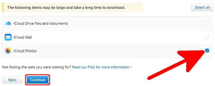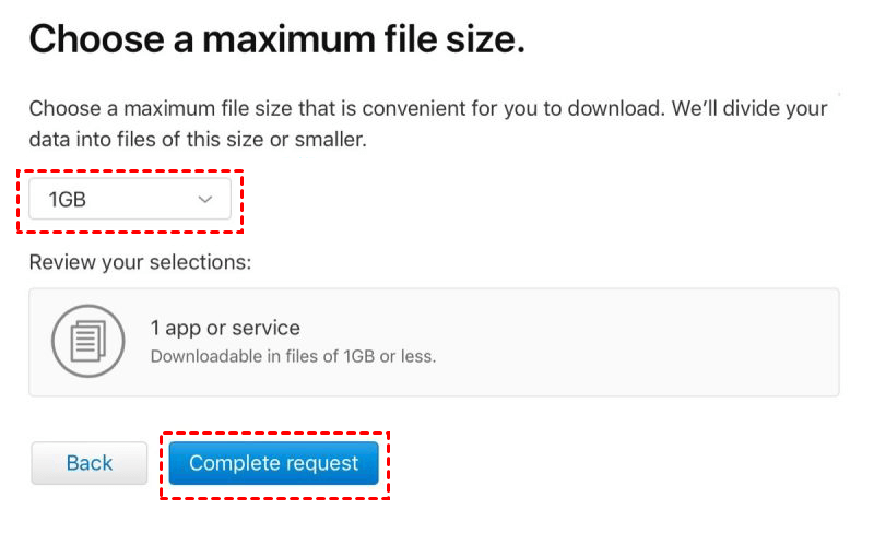 Sie fragen sich vielleicht: „Wie lade ich mehr als 1000 Fotos von iCloud herunter?“, da iCloud Benutzern nur das Herunterladen von 1000 Fotos auf einmal erlaubt. Sie können eine Kopie Ihrer Apple-ID-Daten anfordern. Folgen Sie diesen Schritten: