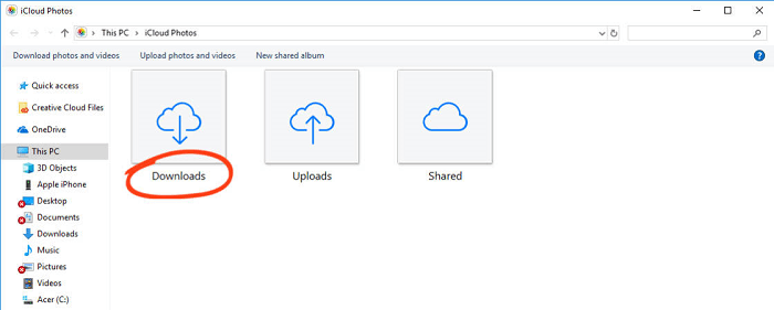 Schritt 4: Gehen Sie zum Datei-Explorer und suchen Sie nach iCloud-Fotos. Öffnen Sie dann den Ordner „Downloads“ und kopieren Sie die ausgewählten Fotos. Fügen Sie die Fotos abschließend auf die externe Festplatte ein.