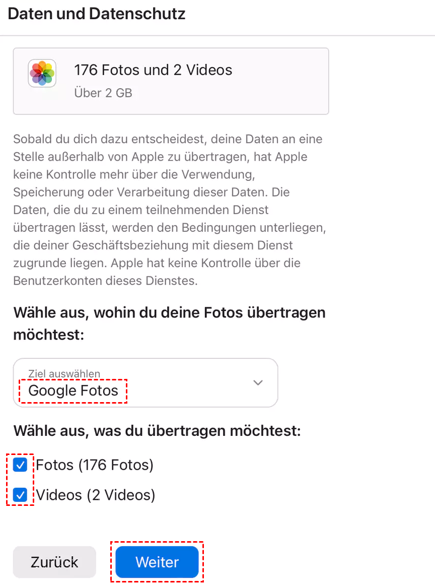 Methode 1. Apple-Fotos auf Google Fotos sichern über Apple-Funktion